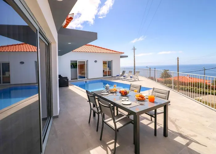 Estreito Da Calheta Villa Calhetascape By Villa Plus בעלת 4 חדרי שינה נמצאת במרחק של פחות מ-25 דקות הליכה על Prazeres. מציע נופים של ברכה, בנכס זה ישנם כספת, אינטרנט מהיר וטלוויזיית לווין בחדרים.